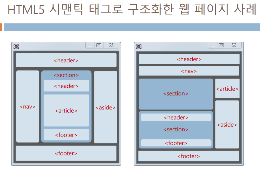 시멘틱 태그로하면 코드를 봤을때 태그이름에 의미가 있어 더욱 이해하기 쉽다