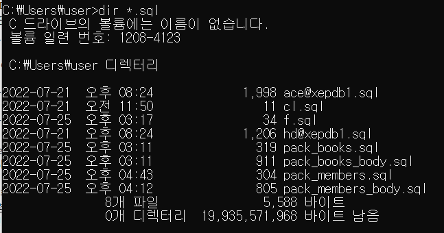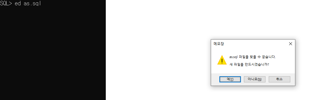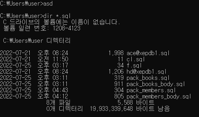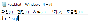 asd 만 쳐도 아래에 dir *.sql 이 나와서 명령을 실행하게 된다