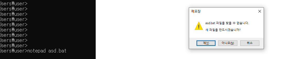 notepad asd.bat 을 하면 다음과 같은 메모장이 뜬다