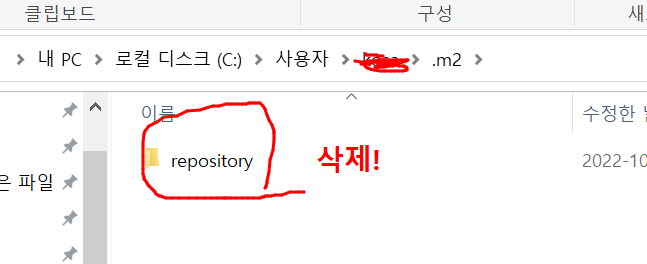 경로는 다음과 같다 C:\Users\[유저이름]\.m2