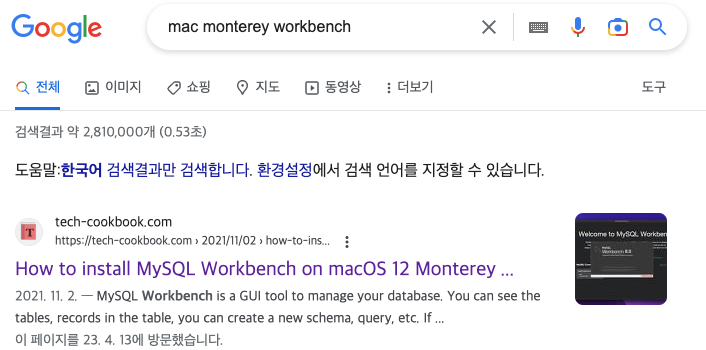 mac에서 workbench에서 select 문만 사용해도 꺼져버려...